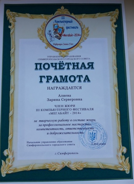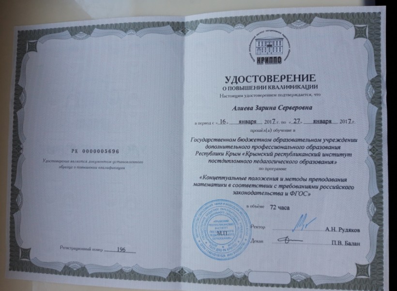 Школьный учитель математики и информатики с 2005 года в ГБОУ РК "ССШИ №1".