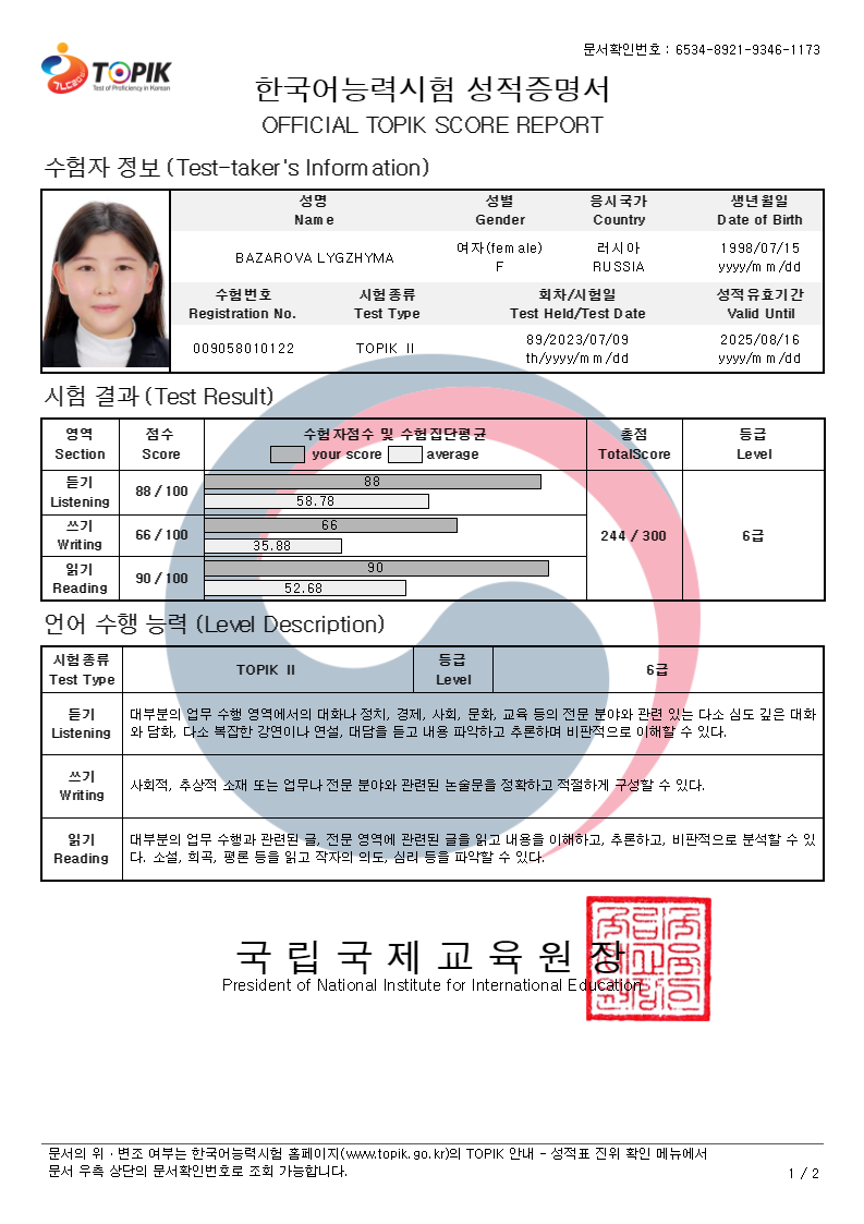 - Образование: Окончила Восточный институт Бурятского государственного университета. Проходила стажировку в Busan University of Foreign Studies. Получила магистерскую степень в университете DONG-A по стипендиальной программе GKS. Имею сертификат Topik 6.