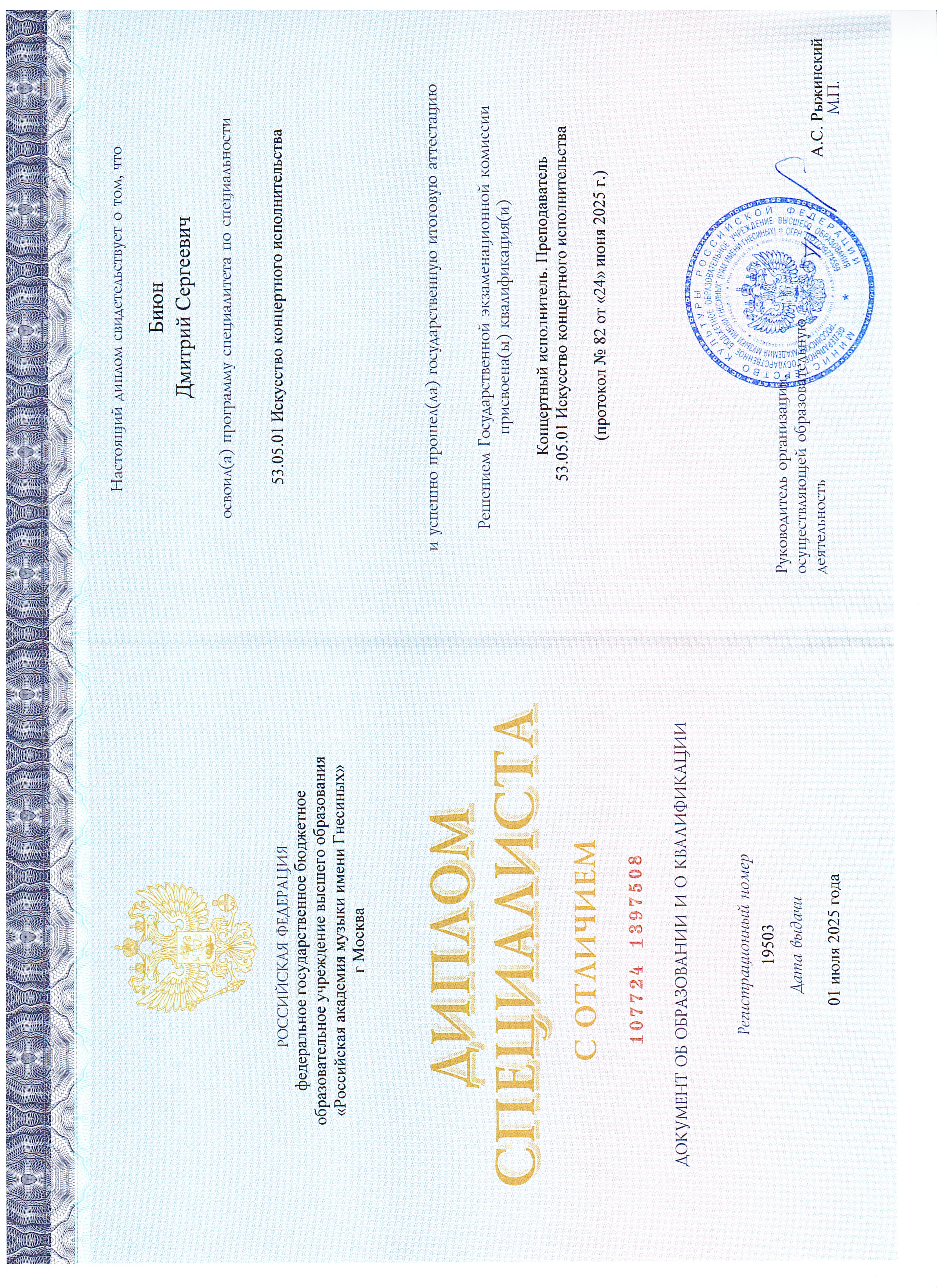 - Образование: Высшее образование Российская академия музыки имени Гнесиных