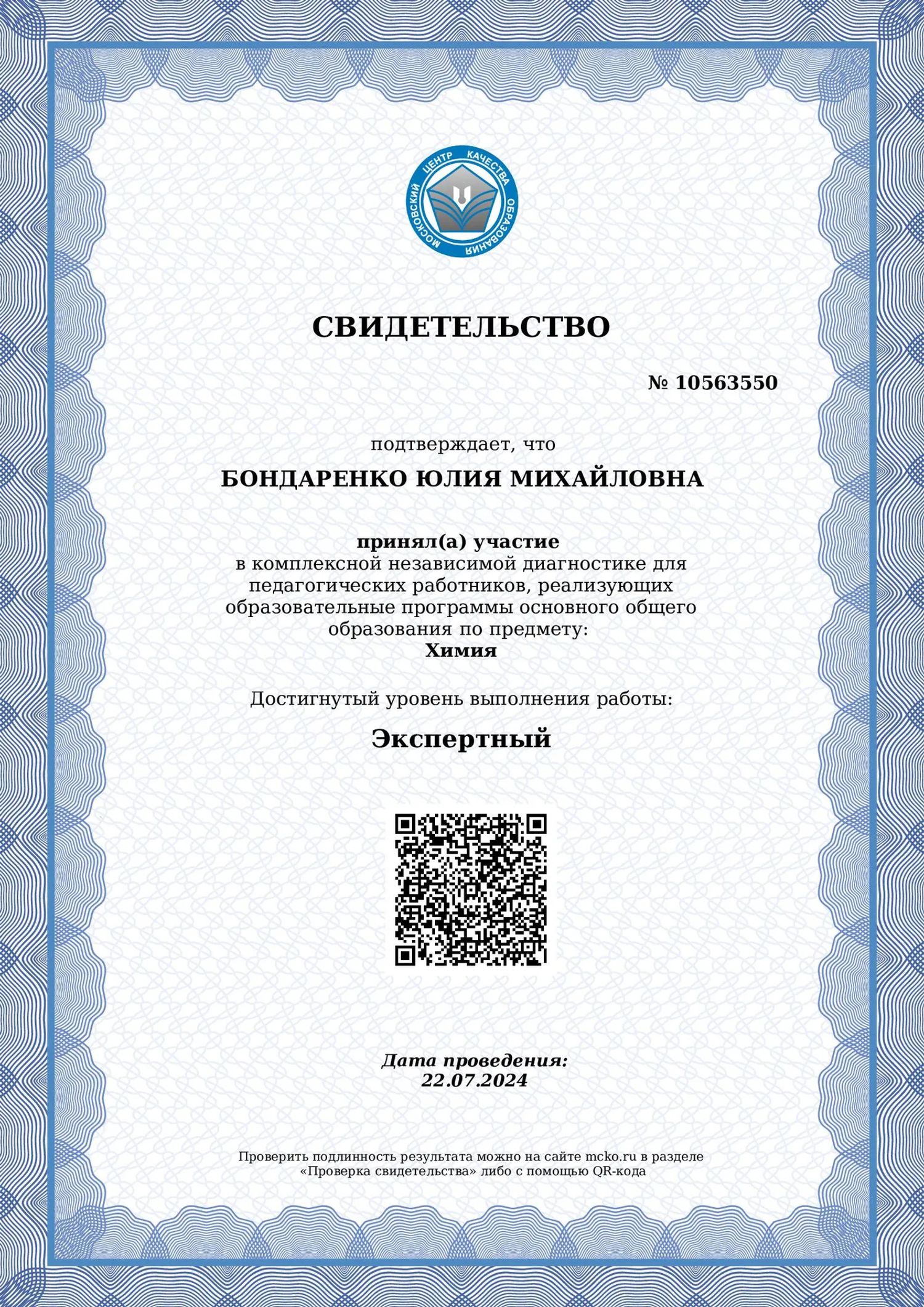 🎓МЦКО, независимая диагностика в формате ОГЭ по предмету — химия, достигнутый уровень выполнения работы — экспертный 2024 г.