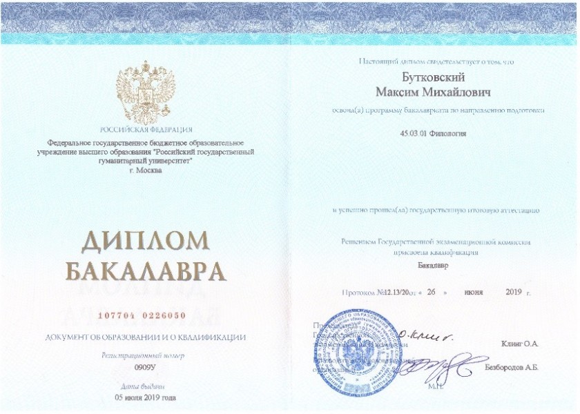 Образование: РГГУ, Историко-филологический факультет, Прикладная филология (иностранные языки), 2014-2019 гг.
