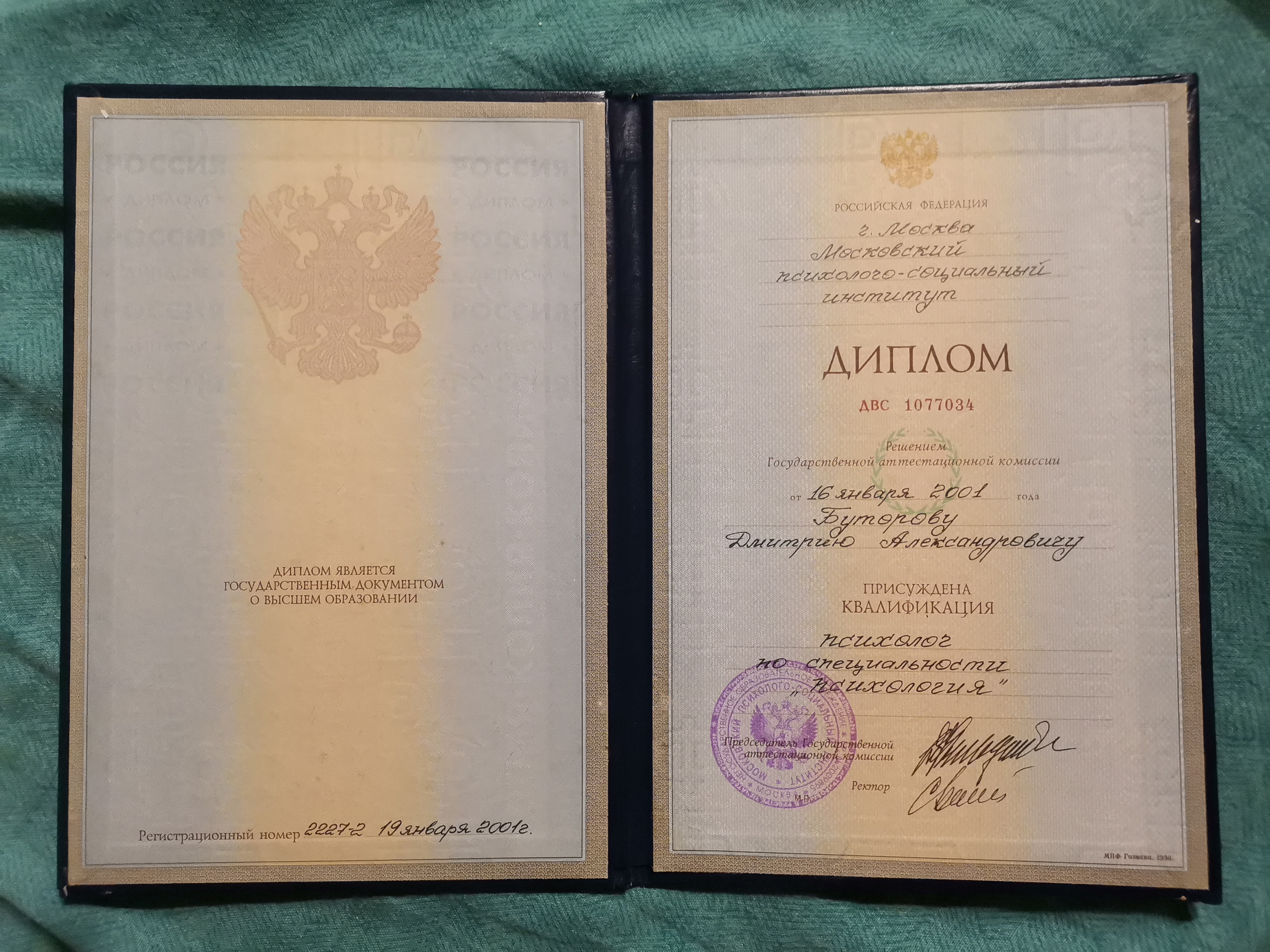 - Образование: Среднее-специальное медицинское и высшее гуманитарное. Московский Психолого-социальный Институт. Факультет психологии.