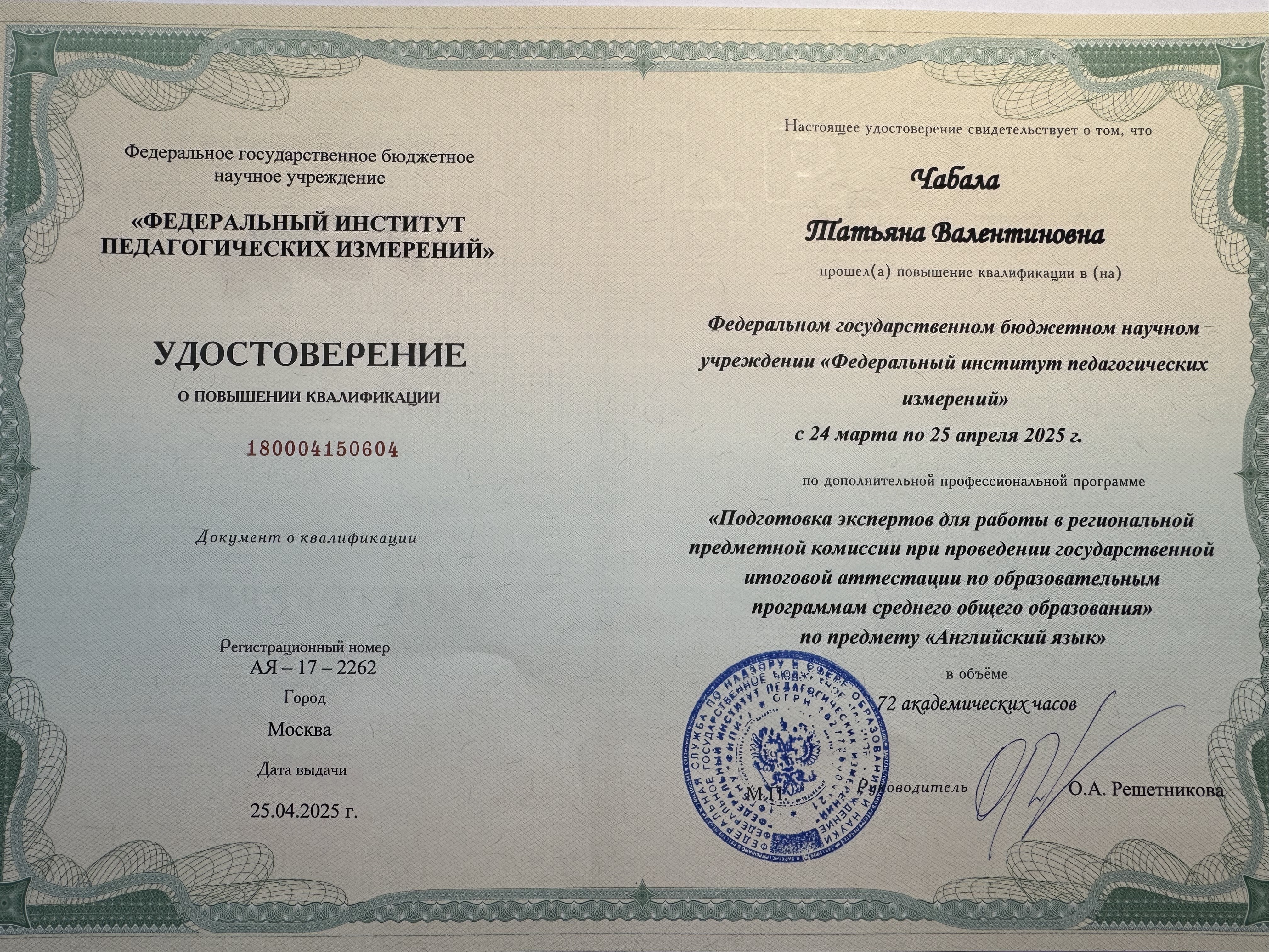 ФИПИ, Москва, 2022- эксперт ОГЭ по английскому языку;