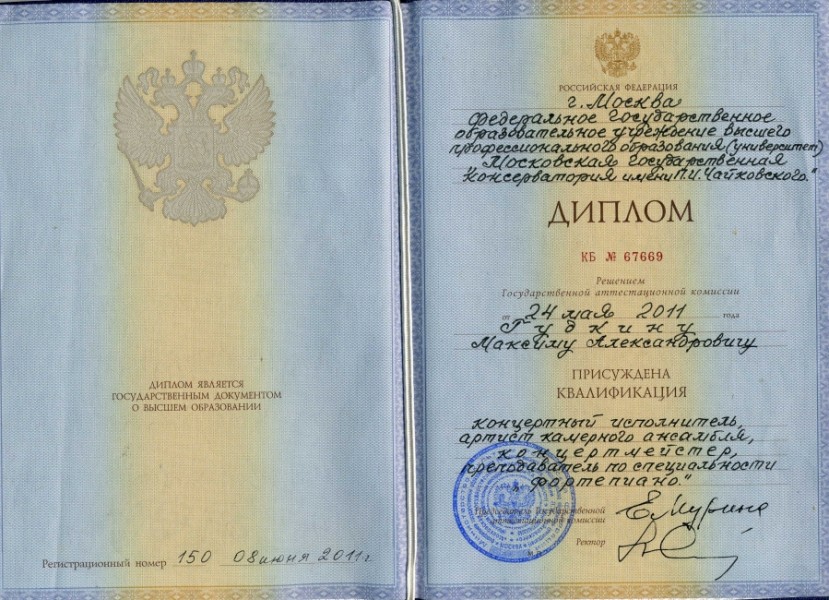 - Образование: МГК имени П. И. Чайковского, фортепианный факультет, 2011 год.