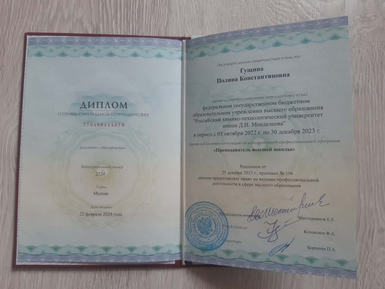 Я закончила лучший химико-технологический вуз страны (РХТУ им. Менделеева), имею второе высшее образование педагога, 3 года опыта работы в лаборатории синтетиком и год на производстве технологом (знаю, что такое реальная химия, а не химия на бумаге). Имею опыт обучения разных людей (от маленьких детей до студентов), уважительно отношусь к своим ученикам и всегда готова заразить их своим энтузиазмом и любовью к химии.