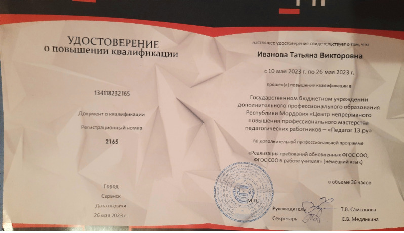 Дополнительная информация: Являюсь победителем конкурса лучших учителей общеобразовательных учреждений РФ. Ветеран труда.Заслуженный учитель. Прошла курсы повышения квалификации Гете Института и других учреждений. Имею грамоты и благодарственные письма разных уровней.