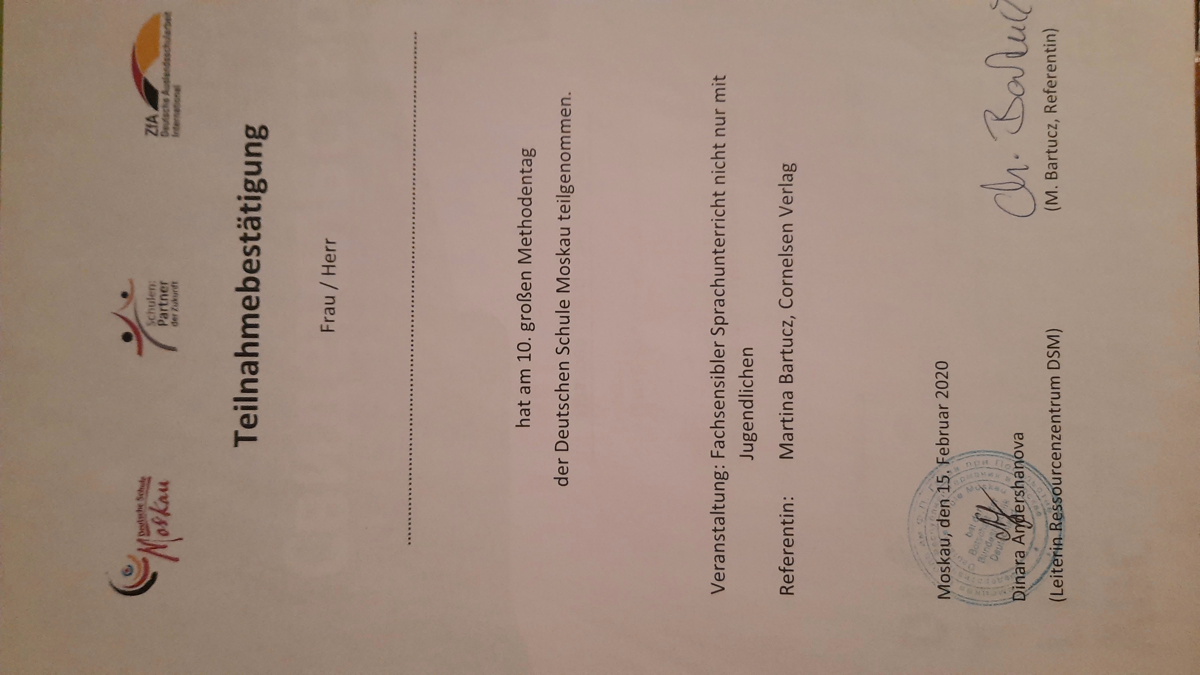 - Образование: Высшая квалификационная категория. Стипендиат Гете Института ФРГ г.Геттинген.