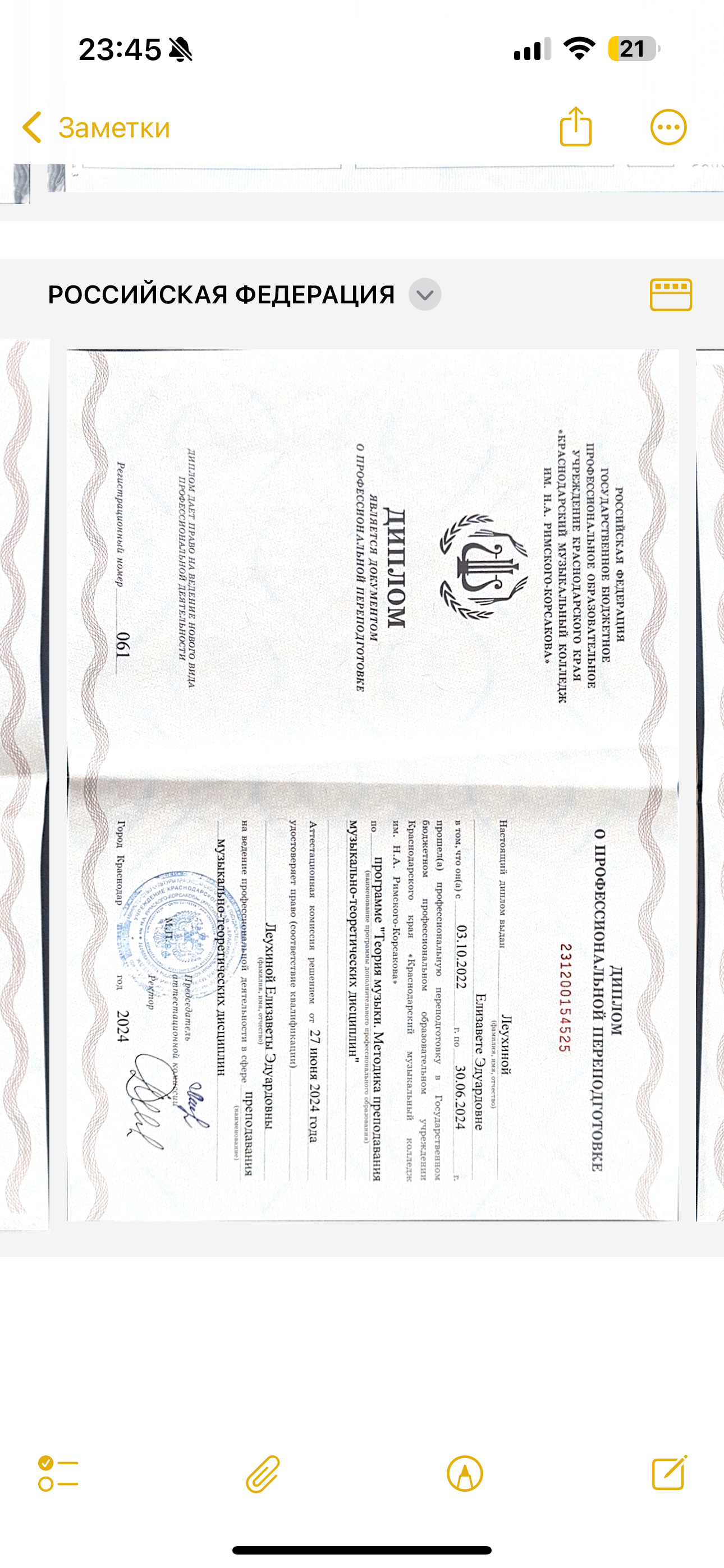 Образование: КМК им. Н. А. Римского-Корсакова СПО