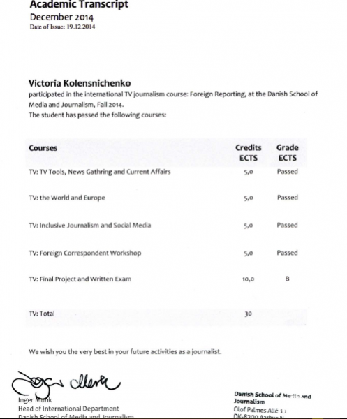 Датская школа медиа и журналистики (Орхус, Дания), 2014 г. - учеба по обмену