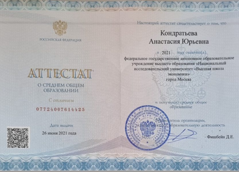 - поступила на бюджет на "Медиакоммуникации" ВШЭ