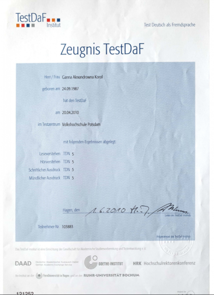 - подготовка к экзаменам TestDaF, DSH, Goethe-Pr