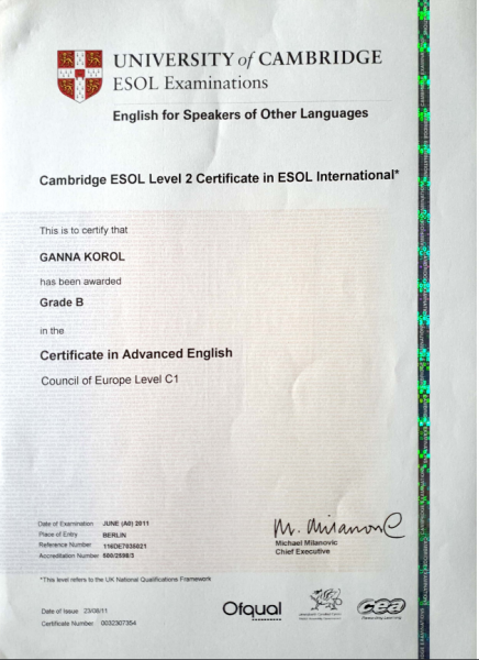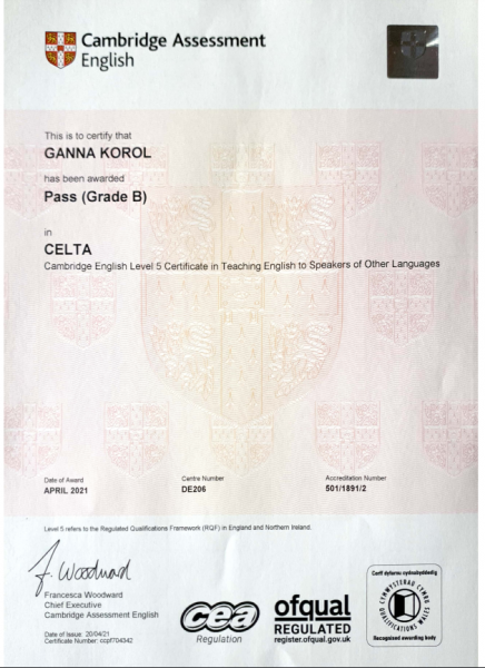 Сертификат CELTA от Cambridge English Language Assessment, Германия