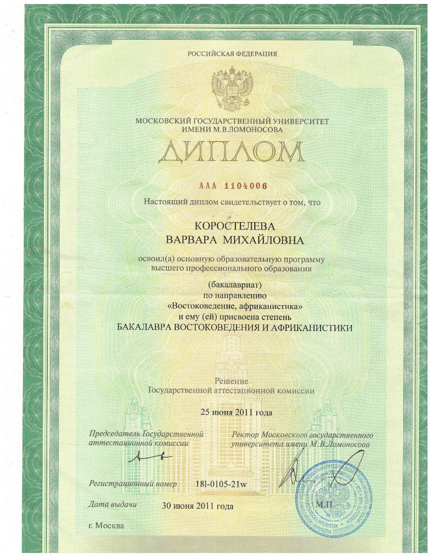 Образование: ИСАА МГУ, востоковедение и африканистика
