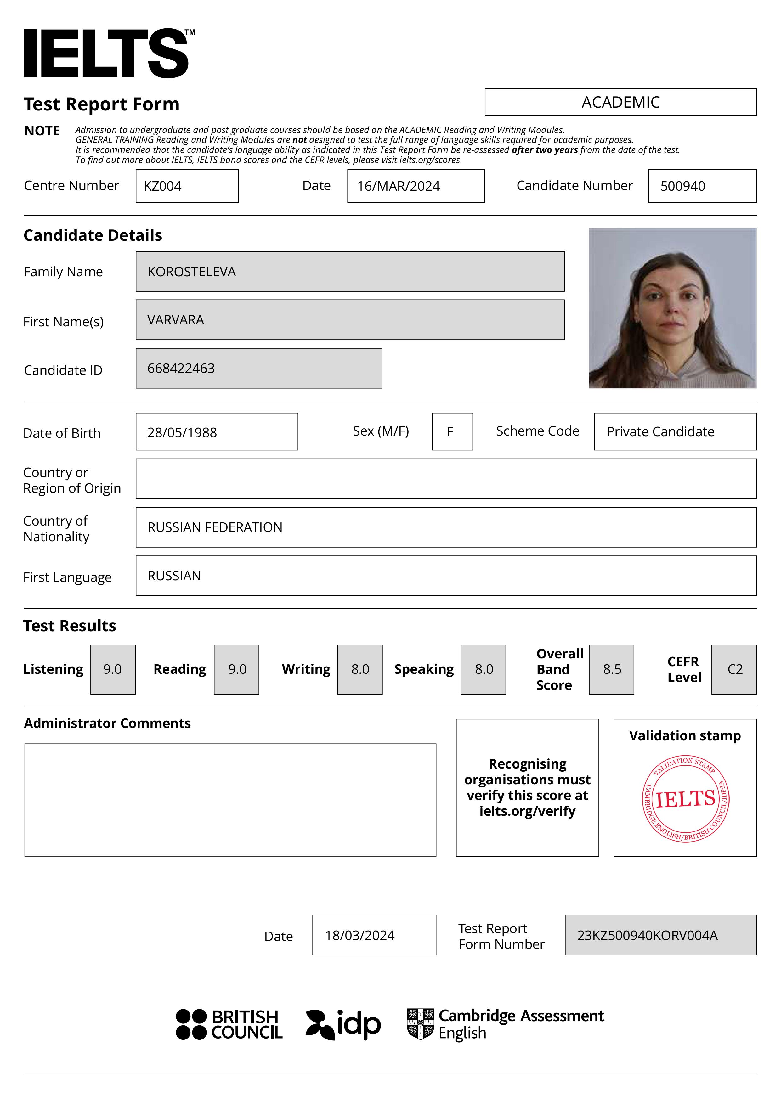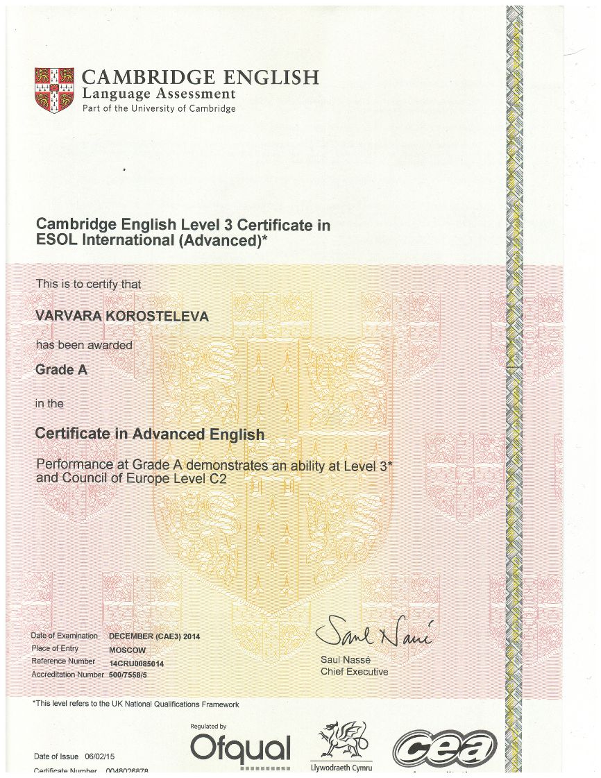 Я преподаю английский язык с 2009 года, а мой опыт подготовки к международным экзаменам - уже 9 лет. Окончила МГУ (лингвистика и литературоведение), имею подтверждённый уровень C2 (CAE pass A, IELTS 8.5).