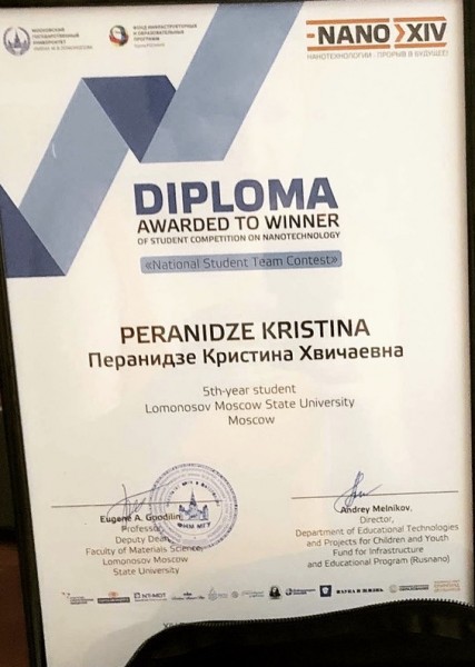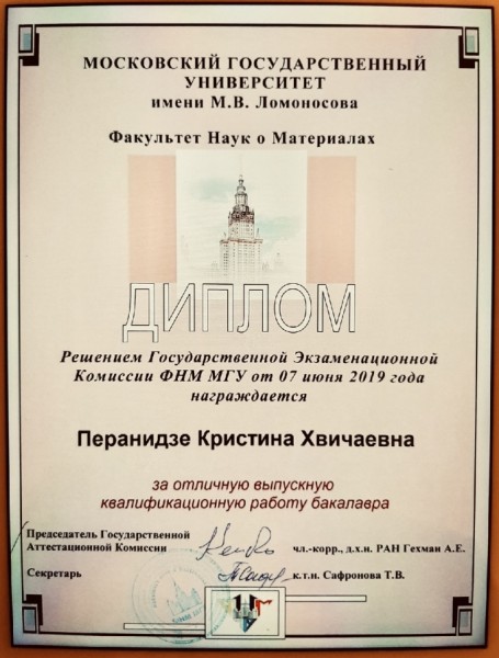- Образование: МГУ имени М.В. Ломоносова по направлению «ХИМИЯ, ФИЗИКА И МЕХАНИКА МАТЕРИАЛОВ» (бакалавр)