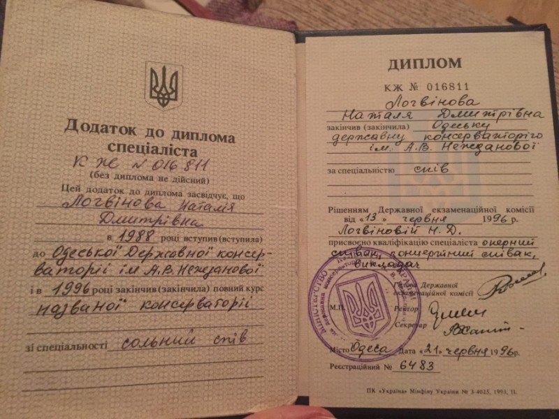 Аттестована, как специалист имеющий право ведения концертно - исполнительской деятельности по творческо - исполнительской специальности в области музыкального искусства - «вокальное искусство» и получила право ведения преподавательской деятельности в высших музыкальных учебных заведениях.