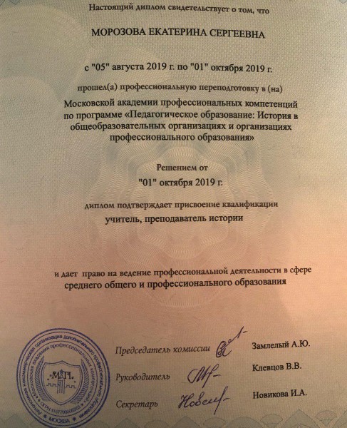 Дополнительные курсы: современная методология преподавания истории, педагогический дизайн.