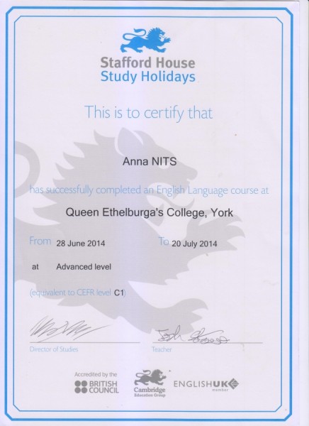1) Колледж святой Елизаветы (г. Йорк) сдача экзамена CEFR (C1)