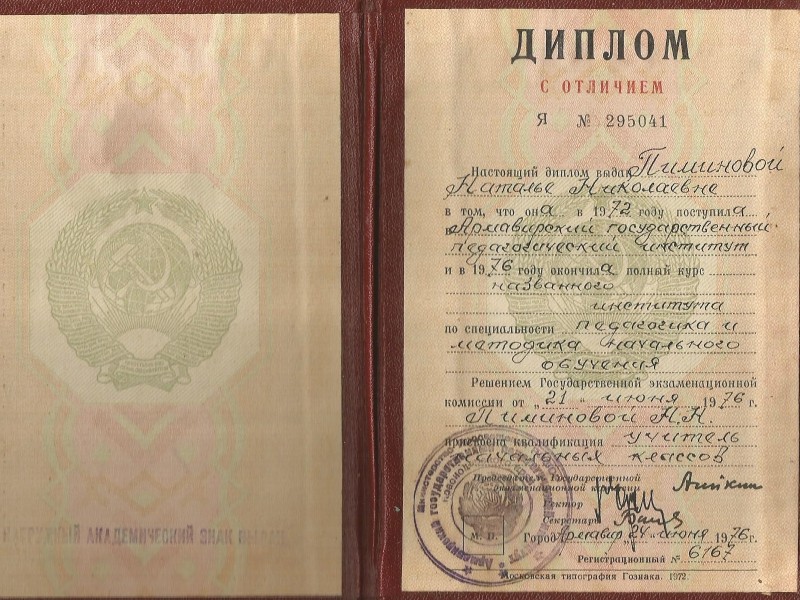 Образование: Армавирский государственный педагогический институт, факультет педагогики и методики начального обучения, окончила по специальности «учитель начальных классов», 1972–1976 гг.