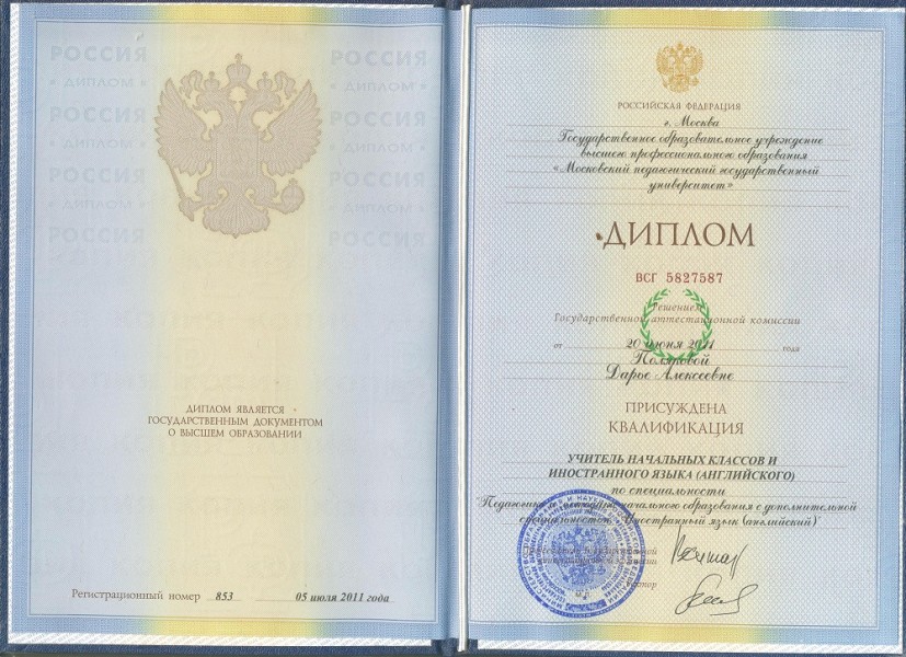Дипломированный специалист (Московский Государственный Педагогический Университет), опыт работы с детьми более 8 лет....