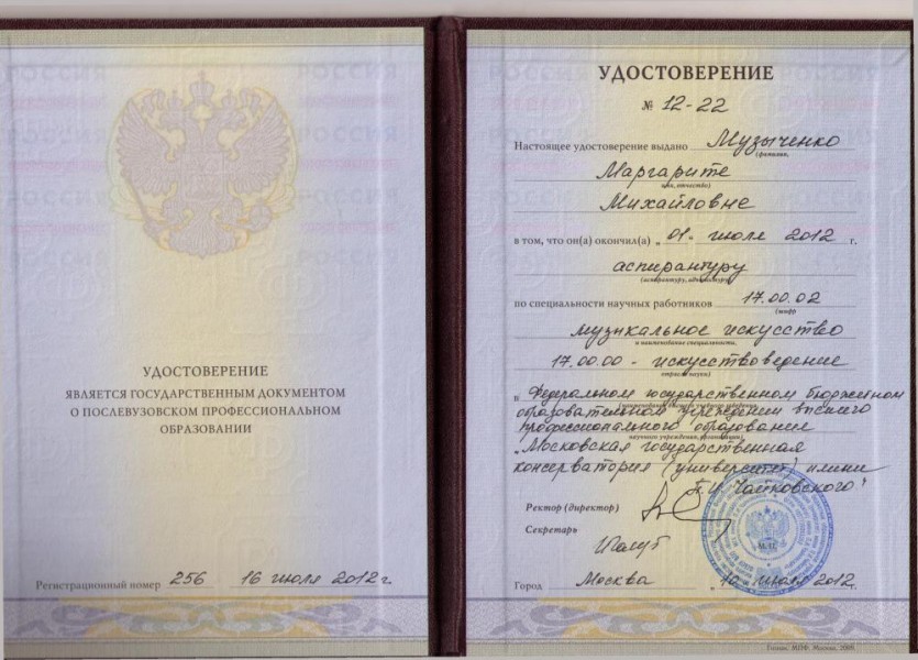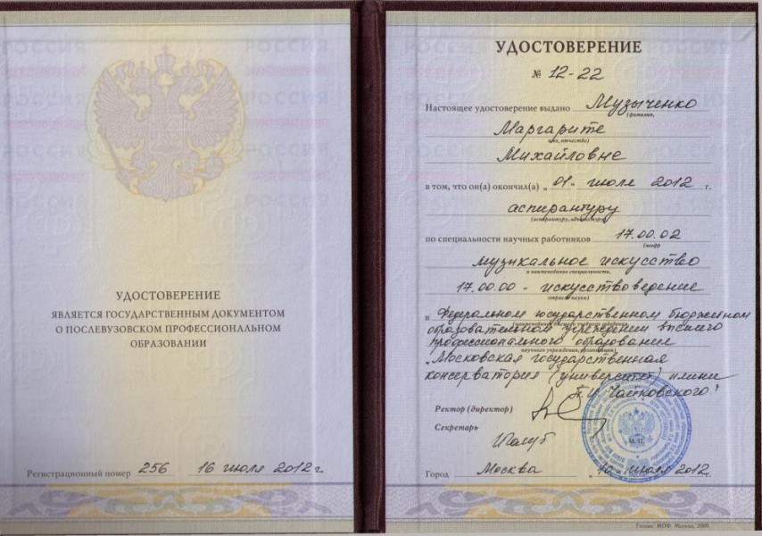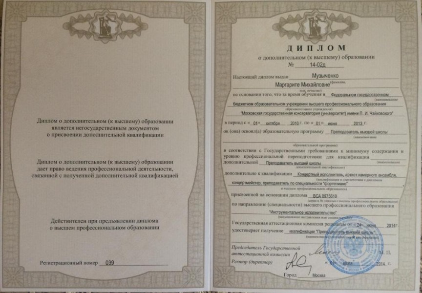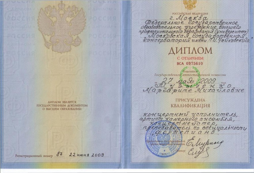 Образование: Московская государственная консерватория (с отличием) + аспирантура. Лауреат Международных конкурсов.