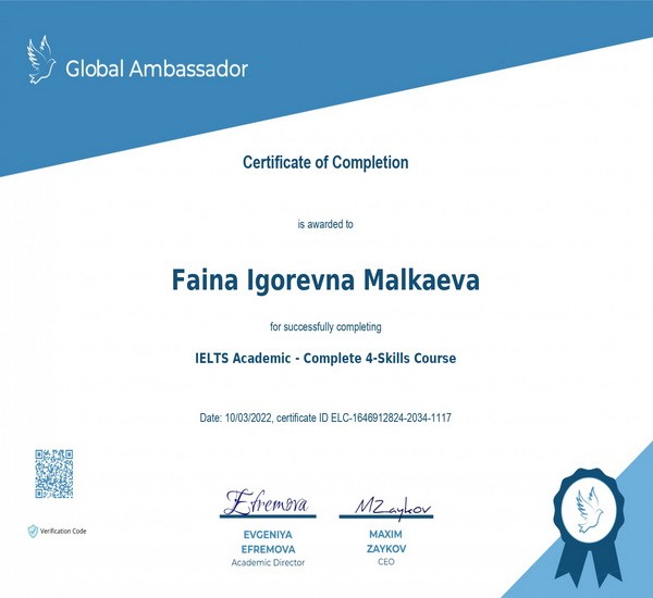 Комментарий: Дошкольный возраст, классы средней школы, программа 9 - 11 классов, абитуриенты, преподавание для взрослых, студентов. Провожу занятия как очно в любой точке Москвы, так и дистанционно c любого региона.