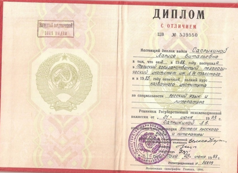 Образование: Тульский Государственный Педагогический Институт, 1993 г.