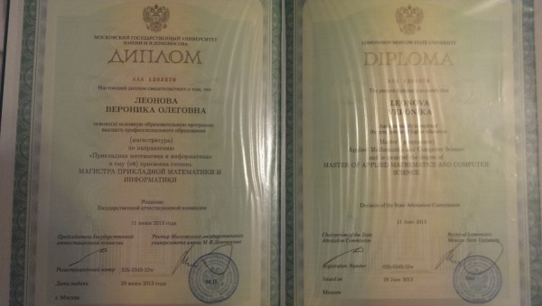 - Образование: МГУ, факультет Вычислительной Математики и Кибернетики (бакалавриат, магистратура).
