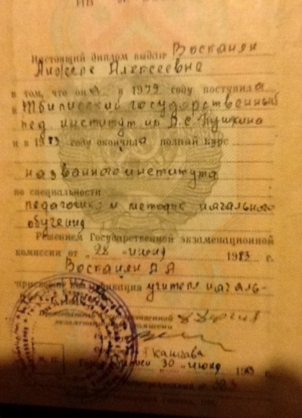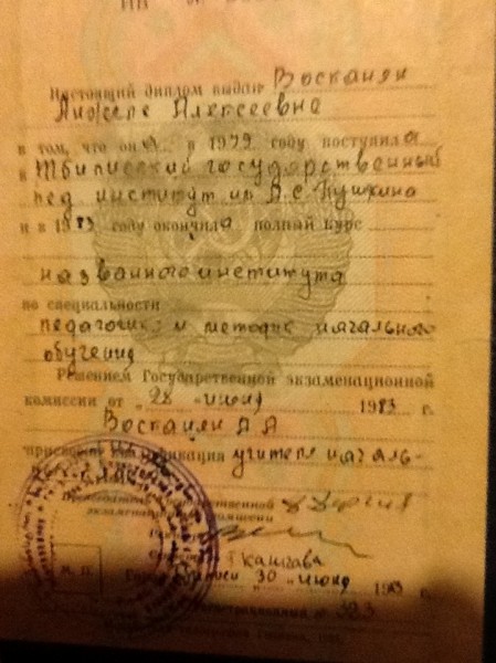 - Образование: Тбилисский педагогический институт, факультет педагогика и психология начального образования. Окончила в 1983 году