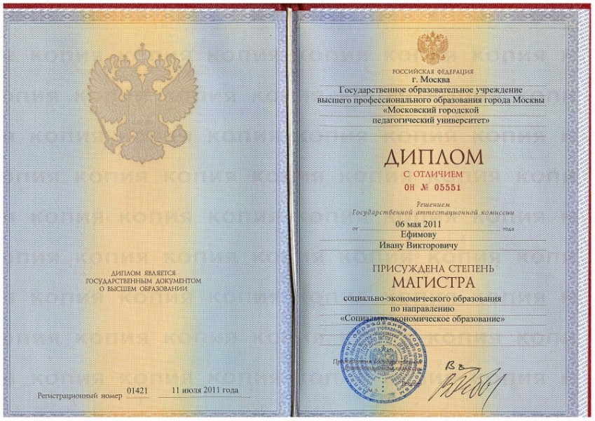 - Образование: Кандидат педагогических наук, магистр социально-экономического образования, специалист по теории и методике обучения истории (Московский Городской Педагогический Университет, диплом с отличием)