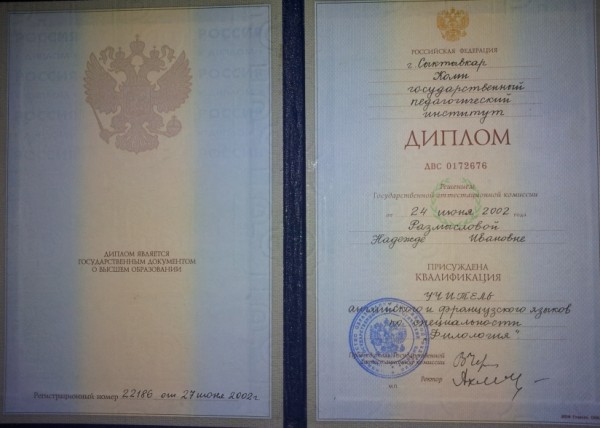 Дополнительная информация: 6 лет преподавала английский испанцам в Мадриде, участвовала в международных проектах в качестве переводчика, училась в университете Рованиеми (Финляндия) в международной группе на английском языке