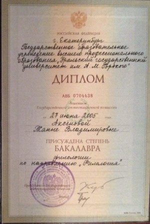 - Образование: Уральский Государственный Университет имени Горького, факультет Романо - германской филологии, 2005 г.