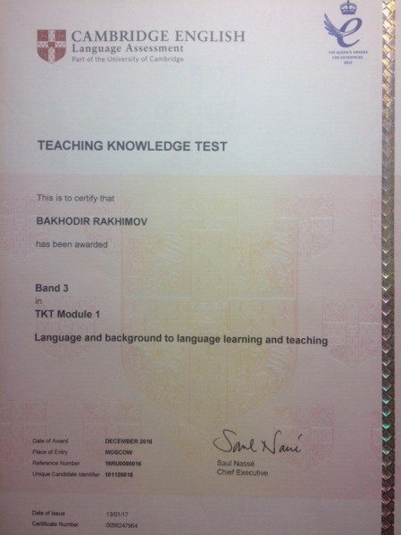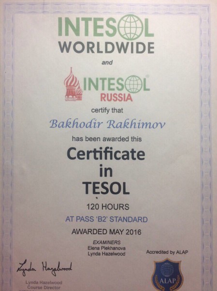 Дополнительная информация: Закончил международные курсы изучения английского языка Tesol и TKT. Проходил практику в школе 1357. Преподаю в языковом центре.