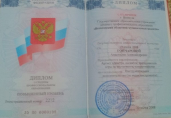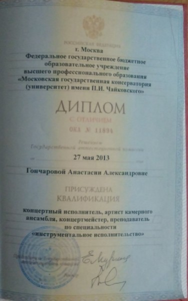 Образование: МГК им.Чайковского, фортепианный факультет,закончила с отличием в 2013 г.;
