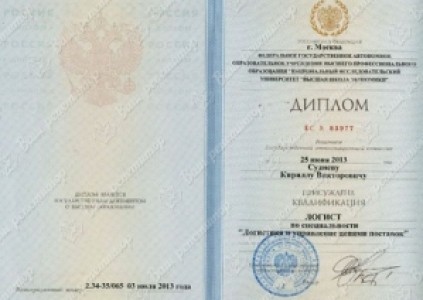 Образование: НИУ ВШЭ, факультет логистики, специальность – логистика и управление цепями поставок (2013 г.).
