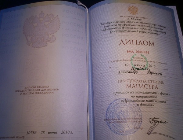 - Образование: МФТИ, 2010 г., магистр. Окончил также ШАД в 2010 г.