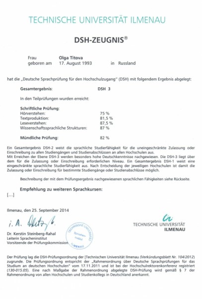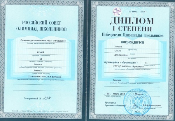 Дополнительная информация: Имею опыт жизни и учебы в Германии, участвовала в международных конференциях и имею публикации в научный журналах, являюсь победителем и призером олимпиады школьников по математике и физике.