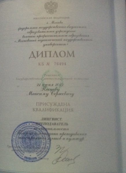 - Образование: МПГУ, факультет иностранных языков, лингвист - преподаватель.