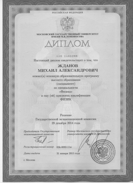 - Образование: МГУ им. М.В. Ломоносова, физический факультет, кафедра оптики и спектроскопии, окончил в январе 2015 года.