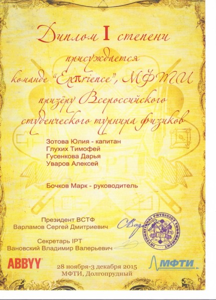 Дополнительная информация: Призер 1 степени Всероссийского Студенческого Турнира Физиков.