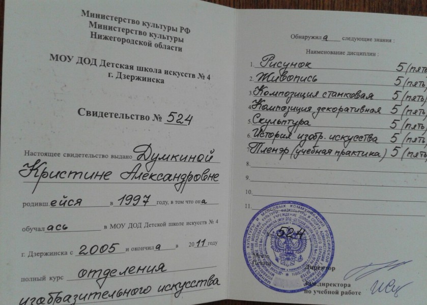 Дополнительная информация: Занимаюсь рисованием с 4 лет. Окончила художественную школу с красным дипломом, 5 лет в изостудии и 2 года специальных курсов академического рисунка