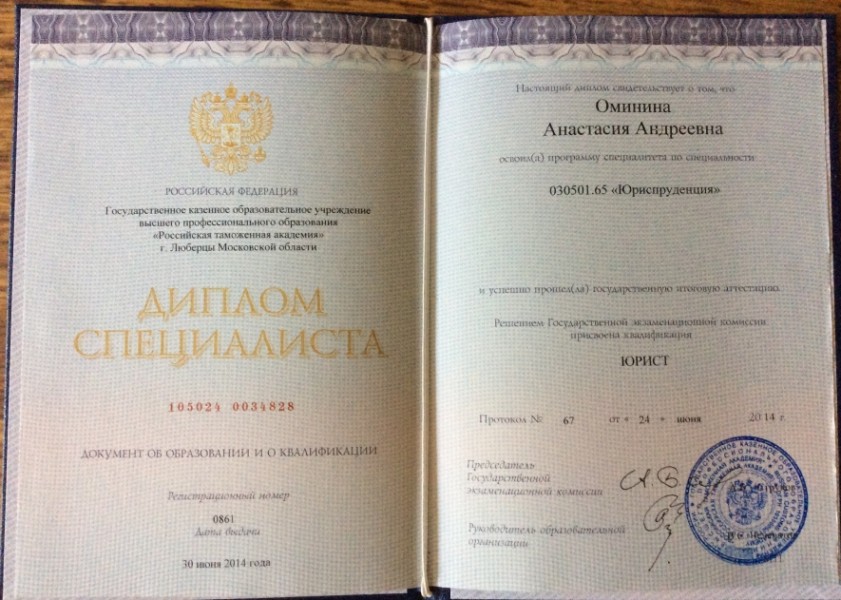 Образование: Российская Таможенная Академия, 2009 - 2014 гг.