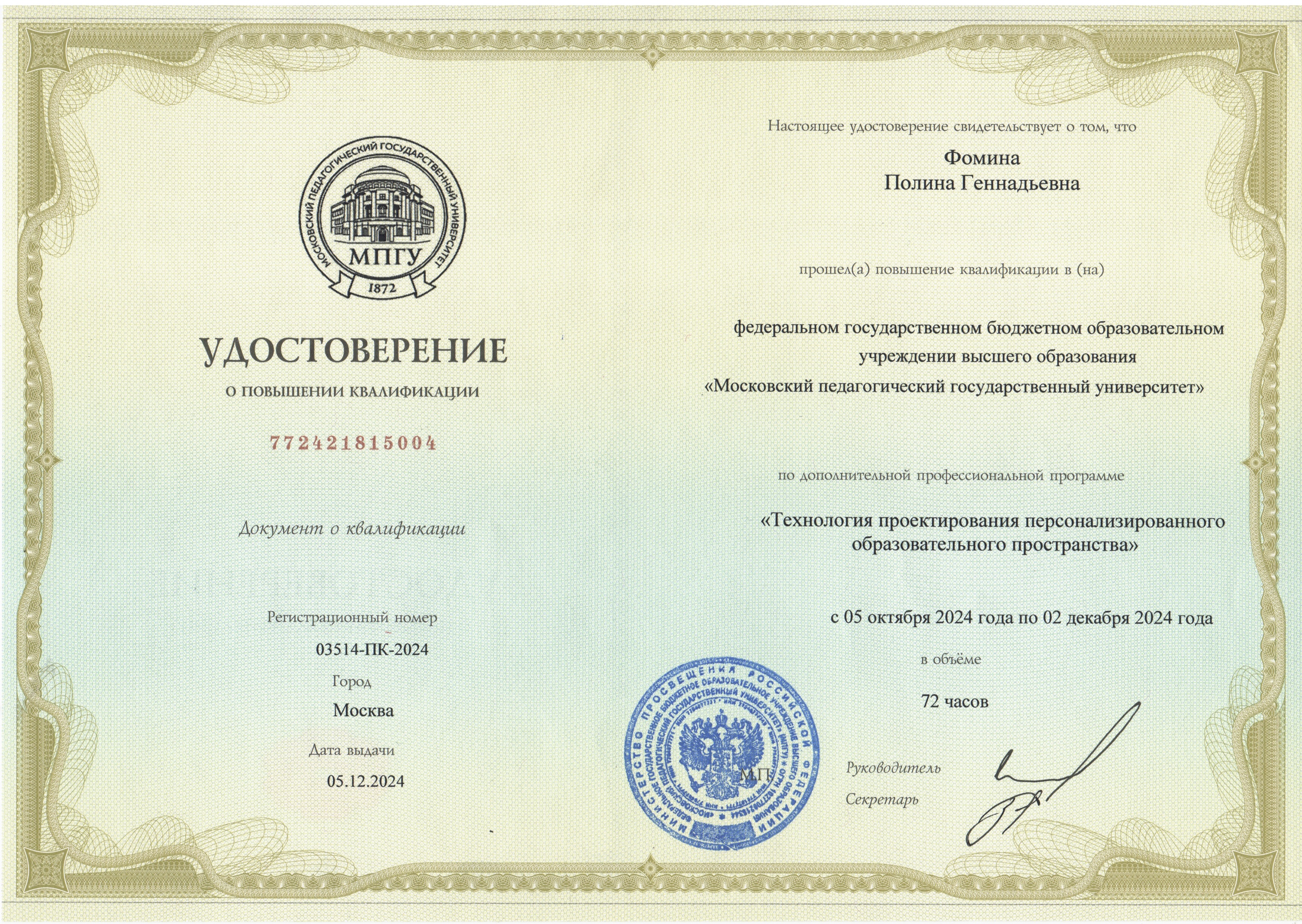 МПГУ, Технология проектирования персонализированного образовательного пространства, 2024