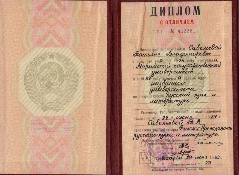 - Образование: МарГУ, историко - филологический факультет, учитель высшей квалификационной категории с 2007 года, ветеран труда России.