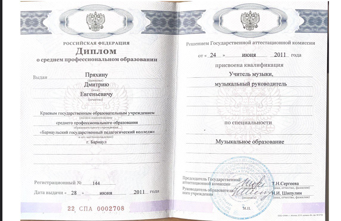 - Образование: Окончив Барнаульский Государственный Педагогический Колледж по специальности "Преподаватель музыки" ,музыкальное отделение.