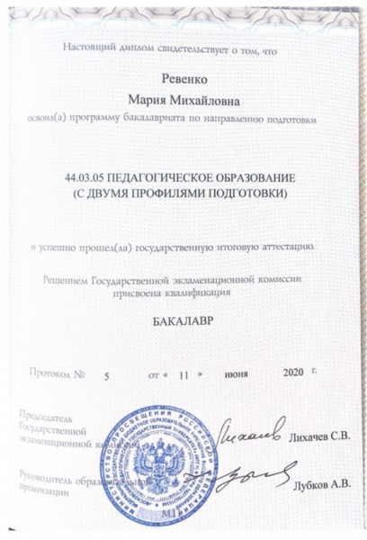 - Образование: В 2020 году окончила филологический факультет МПГУ.
