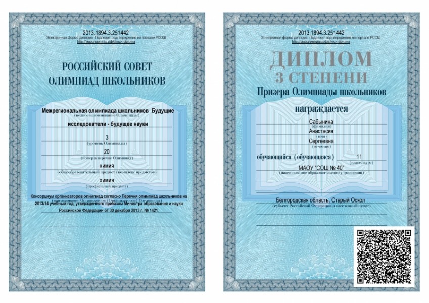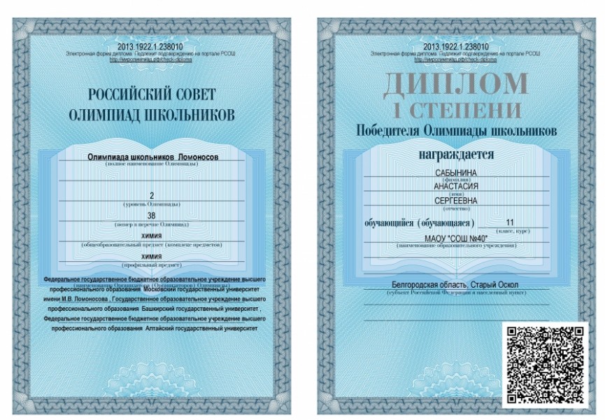 Являюсь трехкратным призером регионального этапа Всероссийской олимпиады школьников, призером Всесибирской открытой олимпиады школьников, победитем Олимпиады школьников «Ломоносов», призером Олимпиады «Юные таланты»).