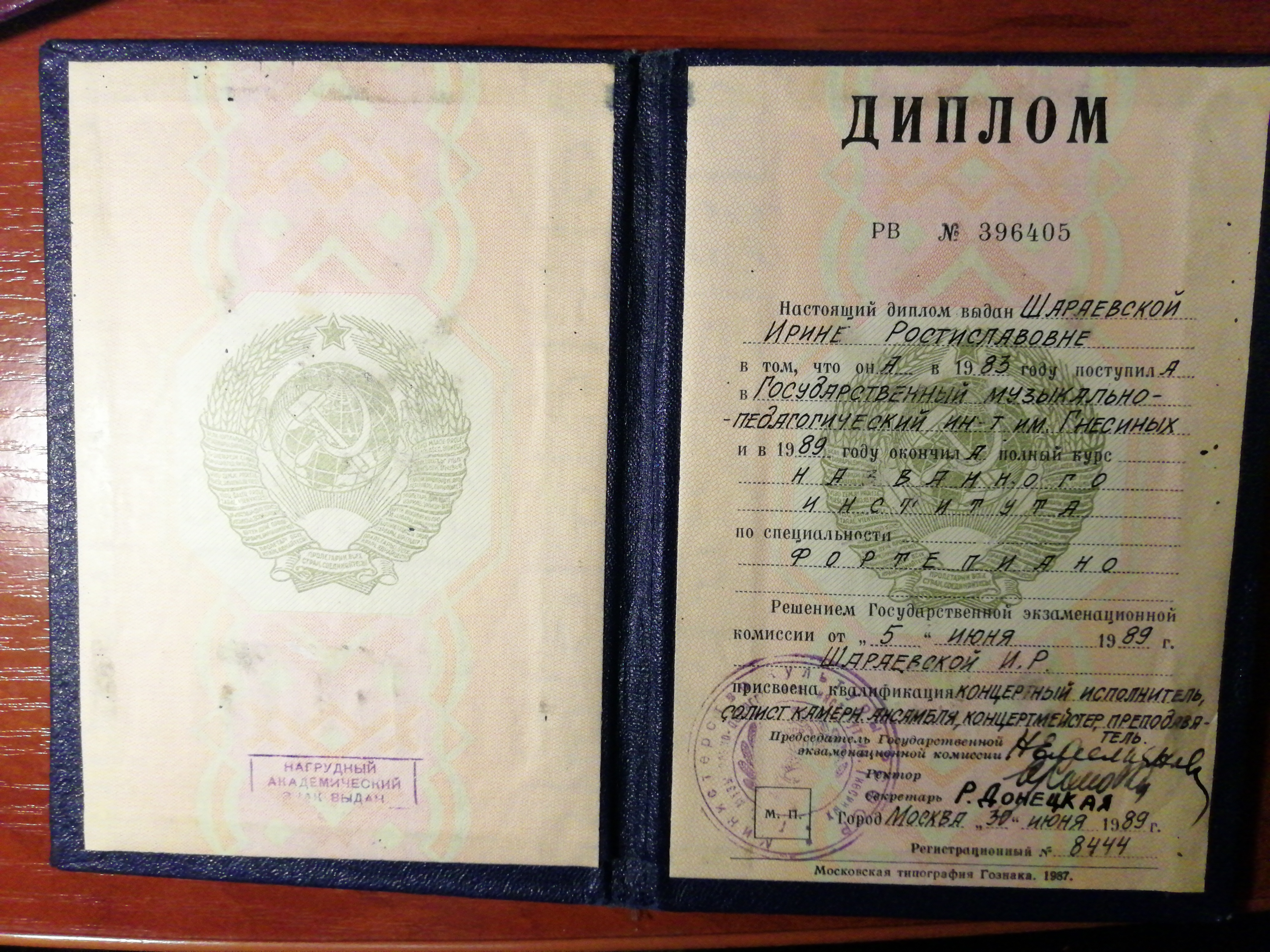 - Образование: РАМ, специальность- фортепиано и ударные, 1989 г.