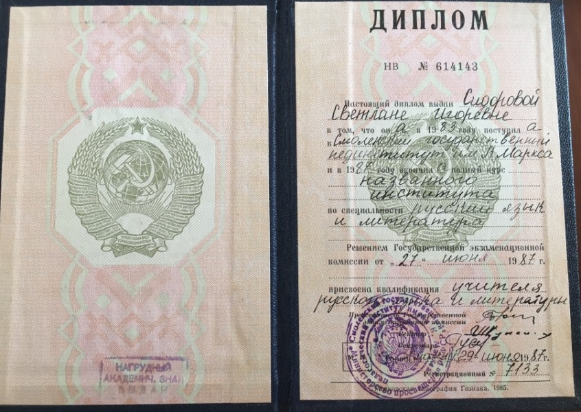 - Образование: Смоленский Государственный Университет, филологический факультет, специальность русский язык и литература.