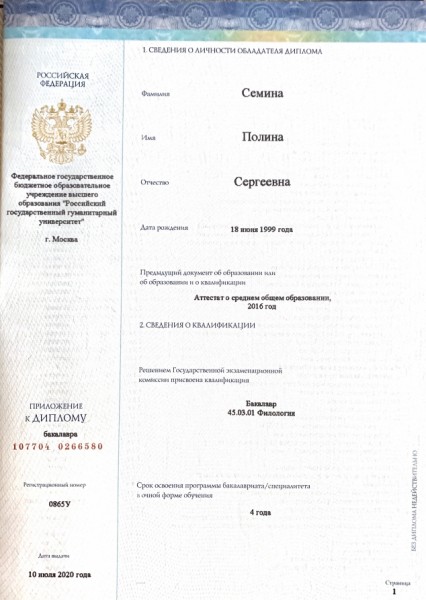 - Образование: РГГУ. Бакалавр. Факультет зарубежной филологии.